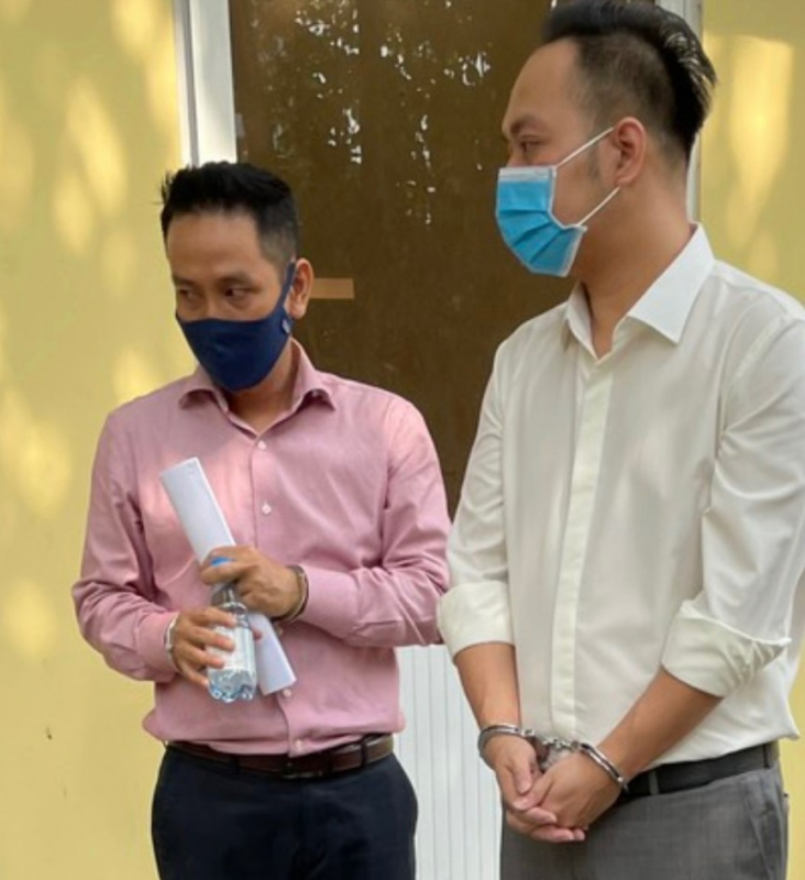 Bị can Nguyễn Nam Huy (áo trắng) và Nguyễn Quang Thái.