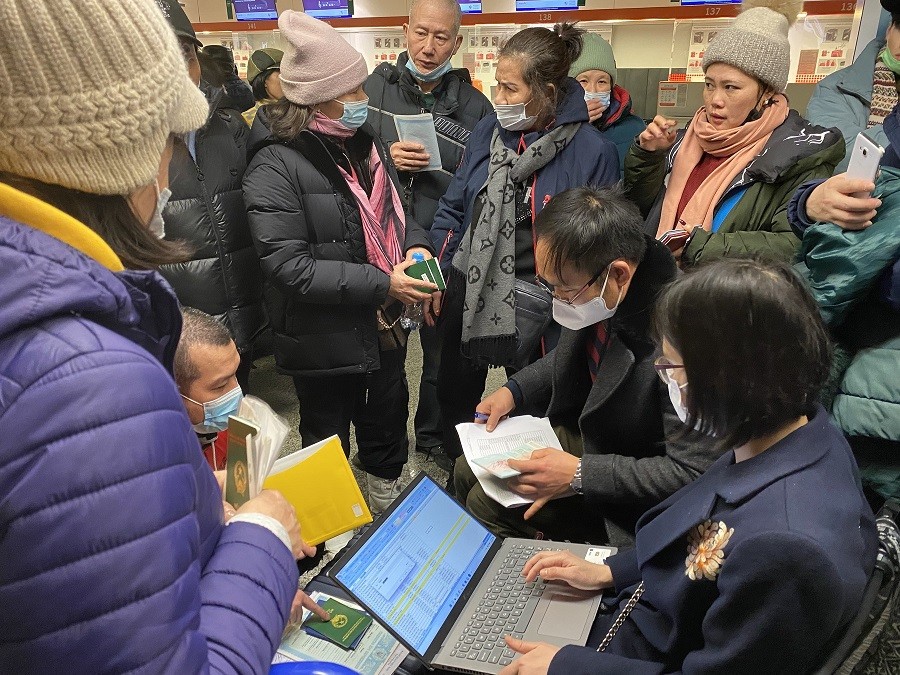 Các cán bộ Đại sứ quán vẫn tiếp tục cập nhật thông tin cho công dân ngay tại sân bay. (Ảnh: Đại sứ quán Việt Nam tại Ba Lan)