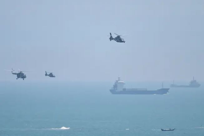 Trực thăng quân sự của Trung Quốc bay ngang qua đảo Pingtan. Ảnh: Getty