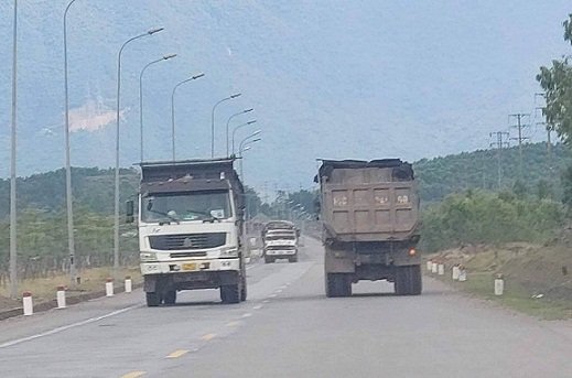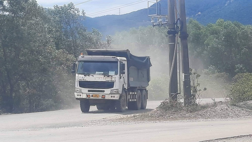 Những chiếc xe chất đầy đá sỏi lại được che chắn sơ sài