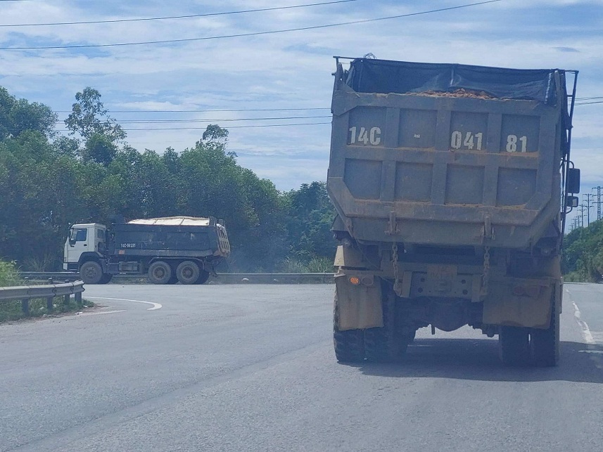 Để ghi nhận sự việc, chúng tôi có mặt tại điểm nóng, cung đường 12C, đoạn đường này luôn xảy ra tình trạng từng đoàn xe hổ vồ màu trắng đua nhau chạy. Chỉ tính sơ qua có ít nhất 12 xe hổ vồ màu trắng, mang biển số 14 chạy ầm ầm qua, điển hình như xe 14C-10720, xe 14C-24055…Về đêm, tuyến đường này càng trở nên lộn xộn khi bị bão bụi che phủ. Các phương tiện phải di chuyển mò mẫm, còn những chiếc xe Hổ Vồ, xe tải hạng nặng vẫn lao vun vút về phía cổng công trình.