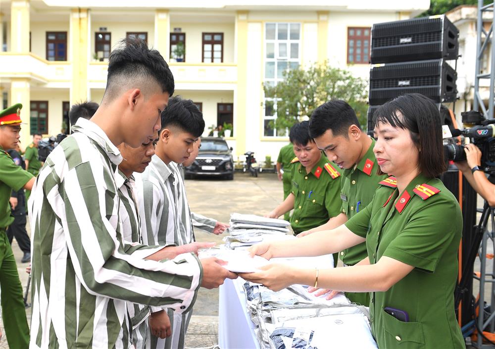 Cán bộ Trại giam Ninh Khánh trao giấy chứng nhận đặc xá, thẻ căn cước và đồ dùng cho các trường hợp được đặc xá năm 2024.