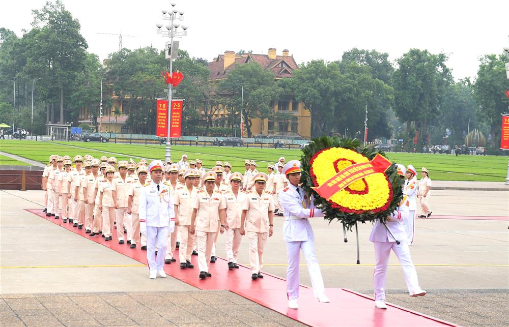 Đoàn đại biểu Đảng ủy Công an Trung ương, Bộ Công an đã đặt vòng hoa, vào Lăng viếng Chủ tịch Hồ Chí Minh; thành kính bày tỏ lòng biết ơn vô hạn đối với Chủ tịch Hồ Chí Minh, vị lãnh tụ thiên tài, người sáng lập và rèn luyện Đảng ta cũng như công lao to lớn của Người đối với sự nghiệp cách mạng vẻ vang của Đảng và dân tộc, trong đó có lực lượng Công an nhân dân.