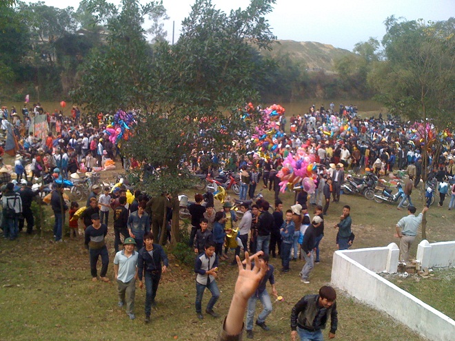 Để tưởng nhớ vị tướng đã có công dẹp giặc, cứ vào mùng 6 Tết hàng năm, người dân lại nô nức họp chợ. Tại đây, không chỉ “choảng" nhau, người ta còn ném cà chua vào nhau để lấy may cho một năm mới. Mọi người cũng vì thế mà không hề cáu gắt dù người có bị bẩn, ướt nhưng trong lòng vẫn mang niềm vui, niềm hy vọng cho một năm mới gặp nhiều may mắn.