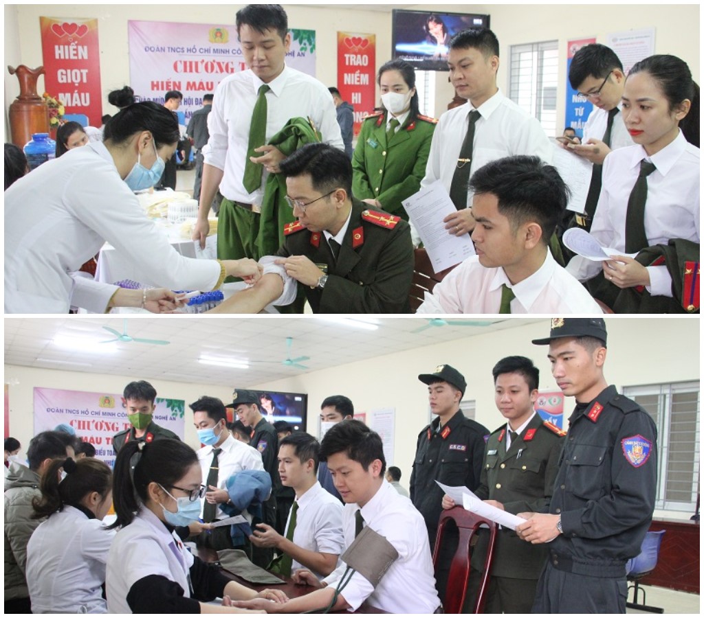 Mặc dù thời tiết ở Nghệ An những ngày này rất lạnh. Song, với tinh thần “Một giọt máu cho đi, một cuộc đời ở lại”, gần 200 cán bộ, chiến sĩ Công an tỉnh Nghệ An đã hăng hái đăng kí tham gia hiến máu tình nguyện. Trong đó, có nhiều đồng chí cán bộ, chiến sĩ đã tham gia hiến máu tình nguyện từ 05 đến trên 15 lần. Mỗi cán bộ, chiến sĩ sẽ tham gia hiến máu với số lượng từ 300ml đến 350ml máu/người.