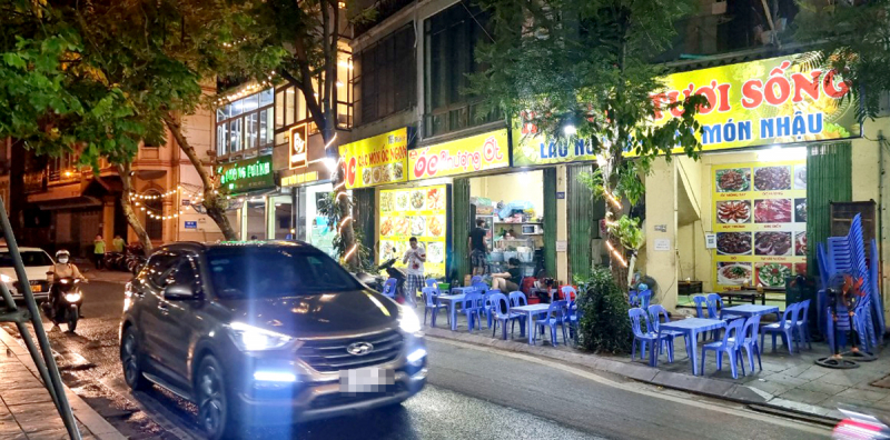 Hàng loạt quán ăn trên phố Trích Sài thuộc phường Bưởi, quận Tây Hồ lấn chiếm vỉa hè làm chỗ kinh doanh.