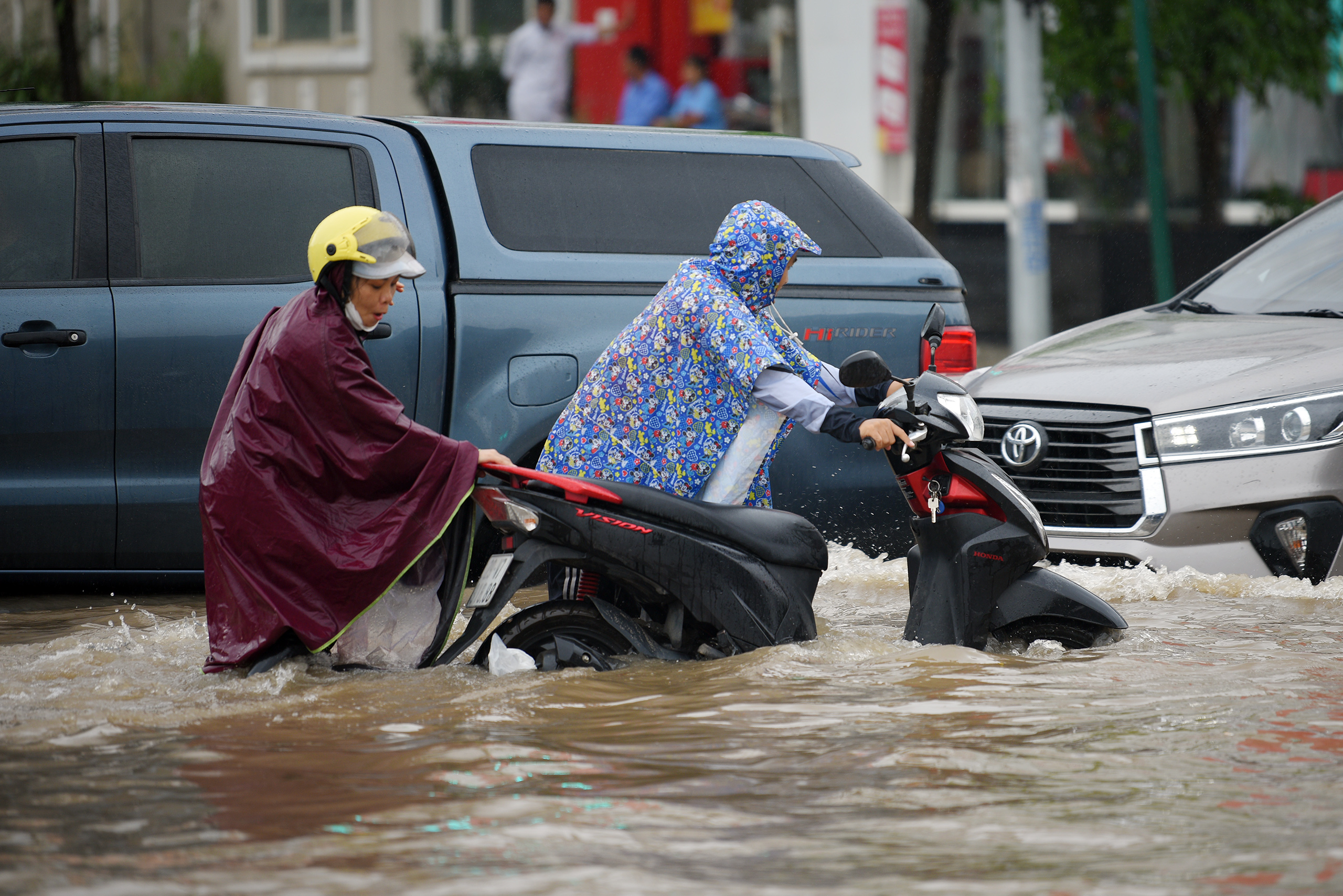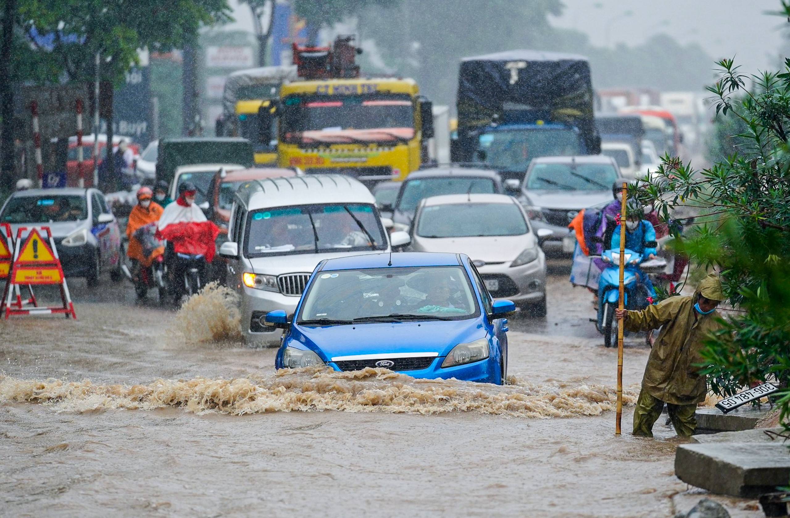Mưa lớn kéo dài từ đêm 22/5 đến sáng ngày 23/5 trên địa TP Hà Nội khiến khu vực đường gom đại lộ Thăng Long (đoạn qua khu đô thị Thiên Đường Bảo Sơn, khu đô thị Nam An Khánh, khu đô thị Lê Trọng Tấn, Hà Nội) rơi vào cảnh ngập sâu, giao thông ùn tắc...