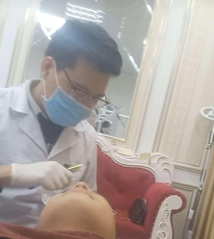 Bác sĩ thực hiện dịch vụ khám chữa bệnh cho khách hàng tại nha khoa Đ.H.Y. Ảnh cắt từ clip