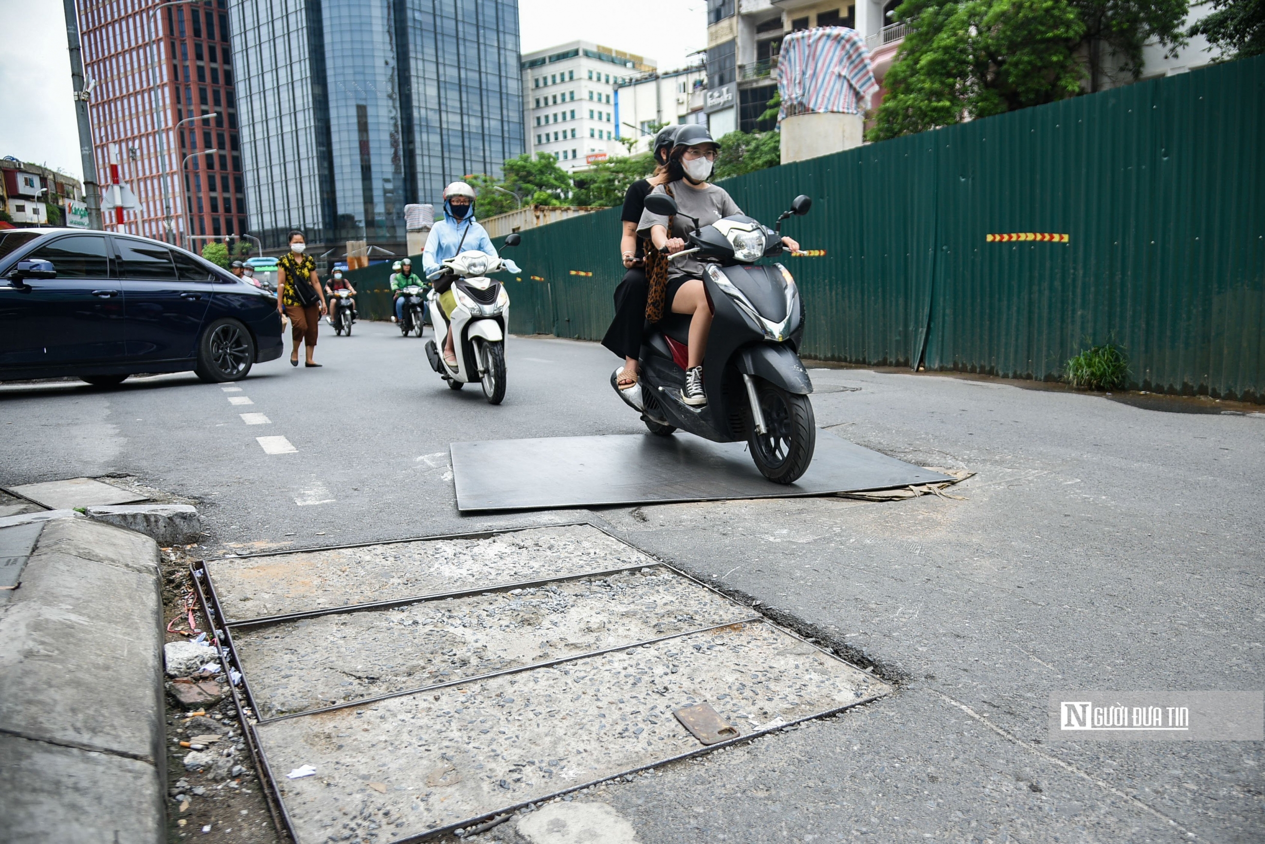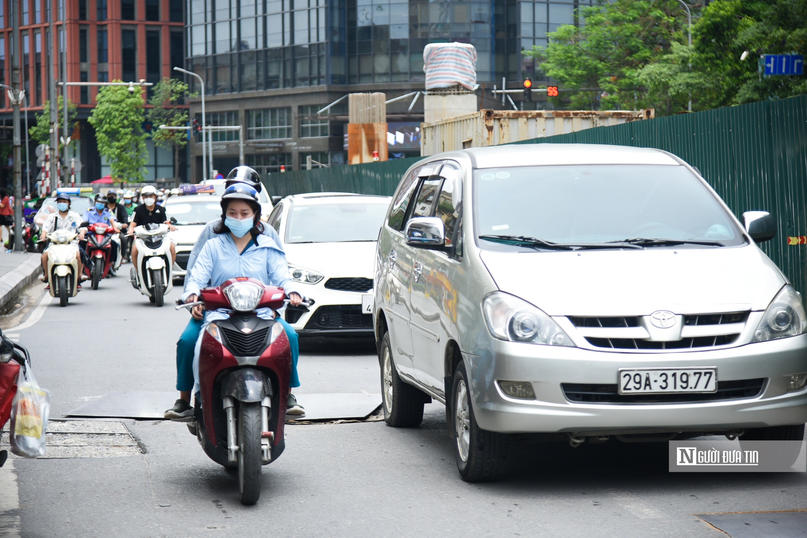 Hà Nội: Thử thách tay lái với nắp cống, hố sụt trên phố Chùa Bộc