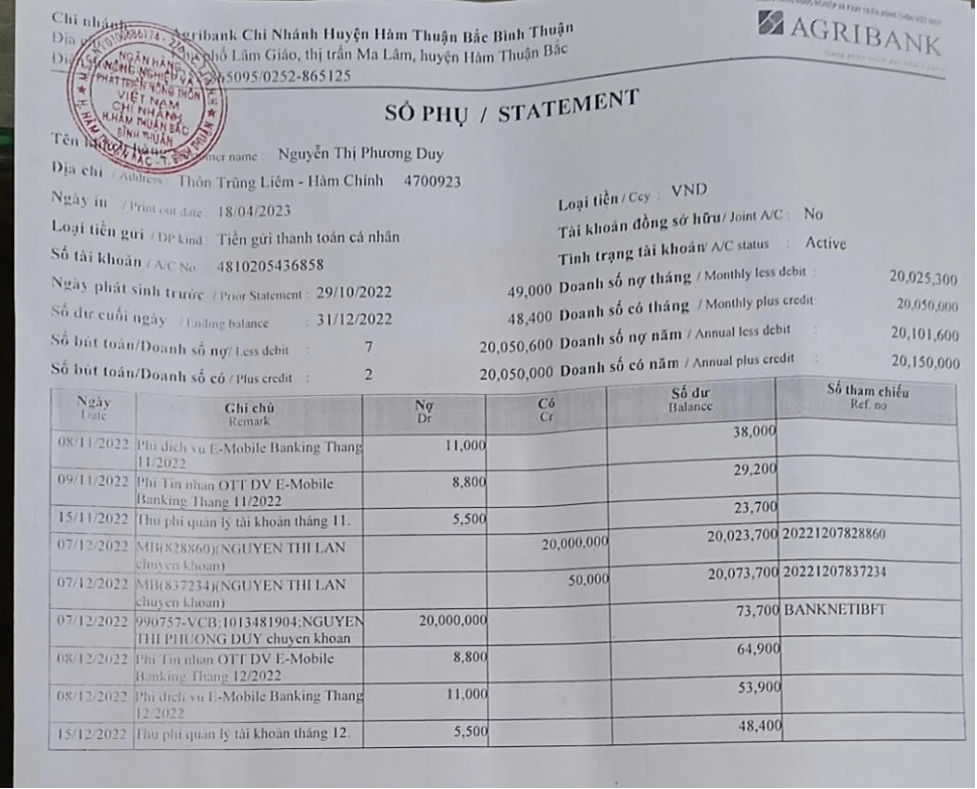 Sao kê chuyển tiền