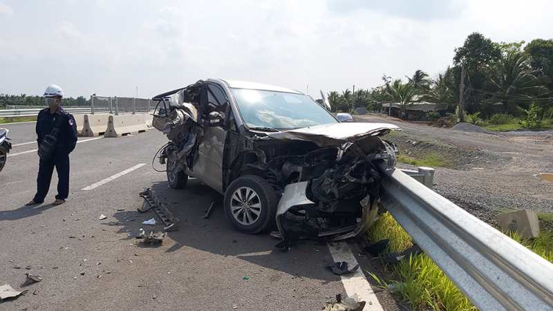 Theo người dân chứng kiến tại hiện trường vụ tai nạn kể lại, vào khoảng 13h40 ngày 17/4, xe đầu kéo kéo theo rơ moóc chở xe ủi đất chuyên dụng phục vụ thi công công trình cao tốc Trung Lương - Mỹ Thuận đang lưu thông trên làn đường ngược lại trên cao tốc Trung Lương - Mỹ Thuận, hướng đi từ Mỹ Thuận về Trung Lương. Trong lúc xe đang đi qua đoạn Km57, đoạn thuộc ấp Kinh 2A, xã Phước Lập, huyện Tân Phước cùng thời điểm này xe con mang BKS 63A-055.79 (chưa rõ danh tính người điều khiển) chở theo một người khác trên xe đang lưu thông từ đường công vụ lên cao tốc và bất ngờ va chạm vào hông chiếc xe đầu kéo đang lưu thông trên đường.