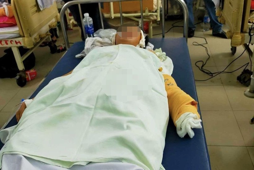 Mẹ con chị L. bị Nam đâm trọng thương phải nhập viện cấp cứu. (Ảnh: H.Y)