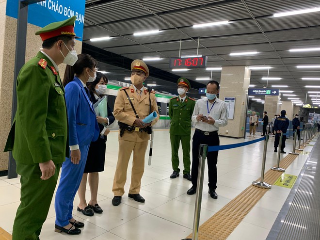Tại nhà ga Cát Linh, Đại úy Nguyễn Văn Thạo cùng với Thượng úy Trần Trung Tuyên nhanh chóng phối hợp với lực lượng Công an phường Cát Linh, CAQ Đống Đa đảm bảo tuyệt đối an toàn giao thông, đô thị xung quanh khu vực nhà ga. Cạnh đó, Thiếu tá Nguyễn Văn Khương trao đổi nhanh với đại diện lực lượng bảo vệ của nhà ga, hướng dẫn hành khách mang phương tiện vào đúng nơi gửi, không để xảy ra tình trạng ùn tắc và gây mất an toàn giao thông khu vực trước cửa nhà ga.