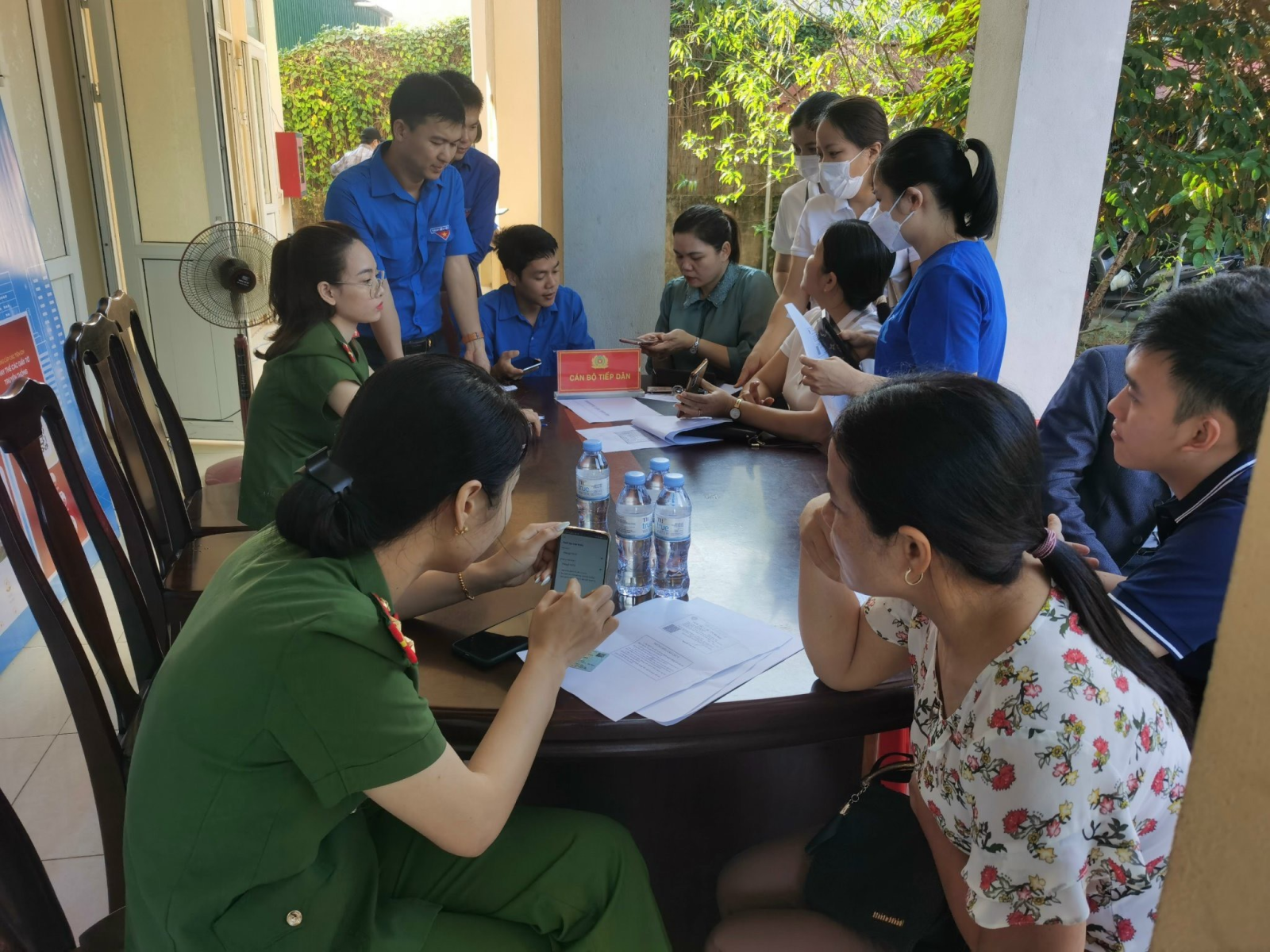 Lực lượng Công an xã tuyên truyền, hướng dẫn người dân tích hợp tài khoản định danh điện tử