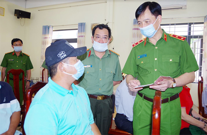 Trung tướng Nguyễn Duy Ngọc, Ủy viên Trung ương Đảng, Thứ trưởng Bộ Công an lắng nghe và trao đổi với người dân đến làm căn cước công dân có gắn chíp điện tử ở phường Vĩnh Nguyên, TP Nha Trang.