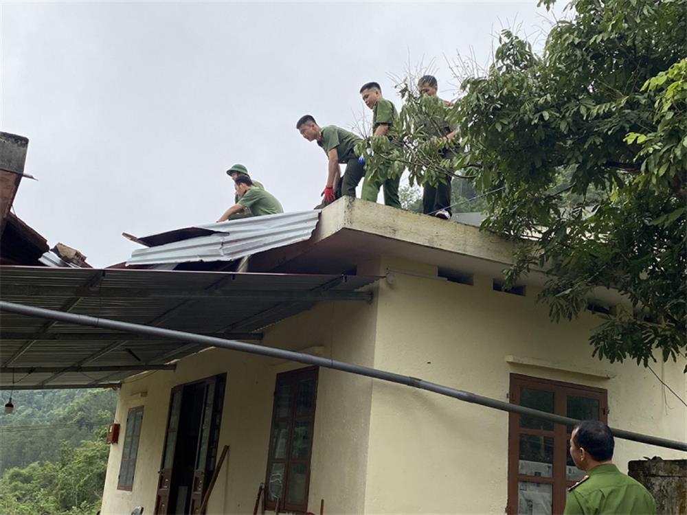 Công an huyện Hà Quảng, tỉnh Cao Bằng huy động lực lượng gồm hơn 30 cán bộ, chiến sỹ trực tiếp đến nhà dân, hỗ trợ, khắc phục hậu quả mưa giông gây ra.