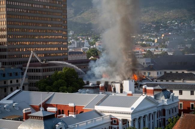 Vụ hỏa hoạn lớn bùng phát tại khu phức hợp tòa nhà Quốc hội Nam Phi ở thành phố Cape Town ngày 2/1 gây hư hại nặng, làm sập mái tòa nhà quốc hội cũ.