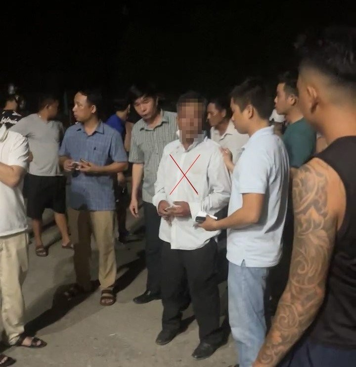 Người đàn ông nghi có hành vi bắt cóc trẻ em bị người dân giữ lại ở thôn Nam Hiếu, xã Cam Hiếu (huyện Cam Lộ) - Ảnh: MXH.