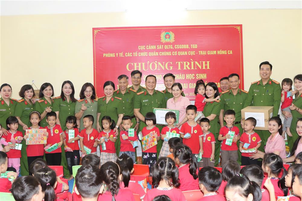 Bên cạnh đó, Đoàn công tác đã đến thăm, tặng quà 25 gia đình trong diện gia đình chính sách, người có công với cách mạng, gia đình neo đơn…; thăm, tặng quà 90 cháu Trường Mầm non Hoạ Mi do Trại giam Hồng Ca xây dựng.