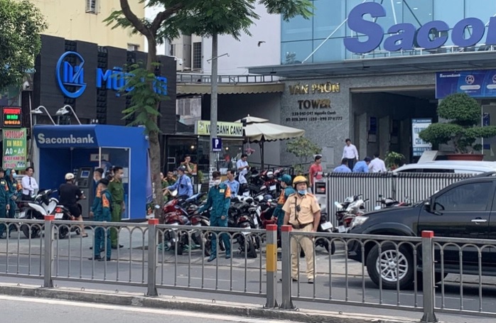 Công an đang phong tỏa một đoạn đường Nguyễn Oanh và phía trước trụ sở Công ty Cổ phần Kinh doanh F88 để thực hiện việc khám xét đối với công ty này.