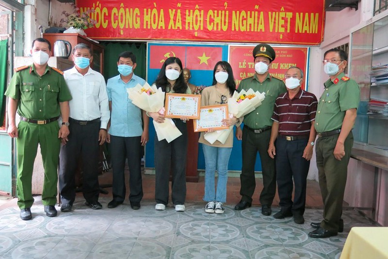Công an quận Tân Phú tổ chức khen thưởng biểu dương tinh thần dũng cảm của 2 nữ sinh viên.