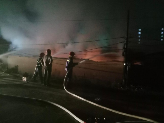 Đến 19h cùng ngày, lực lượng PCCC vẫn tiếp tục phun nước dập lửa, khống chế đám cháy.