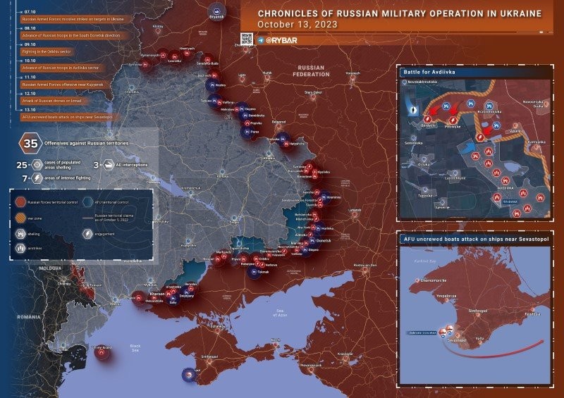 Bản đồ chiến sự Ukraine ngày 13/10. (Ảnh: Rybar).
