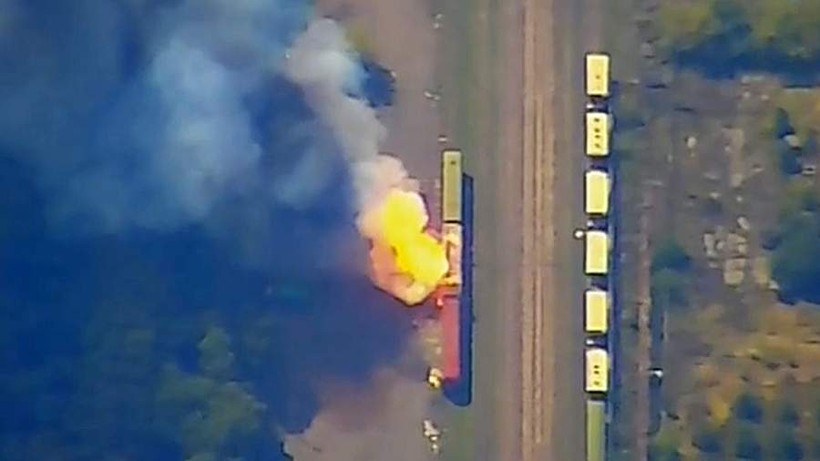 Ban đầu, toa tàu bốc cháy, sau đó phát nổ và khói lửa bốc lên. 3 toa tàu bị cháy rụi hoàn toàn.