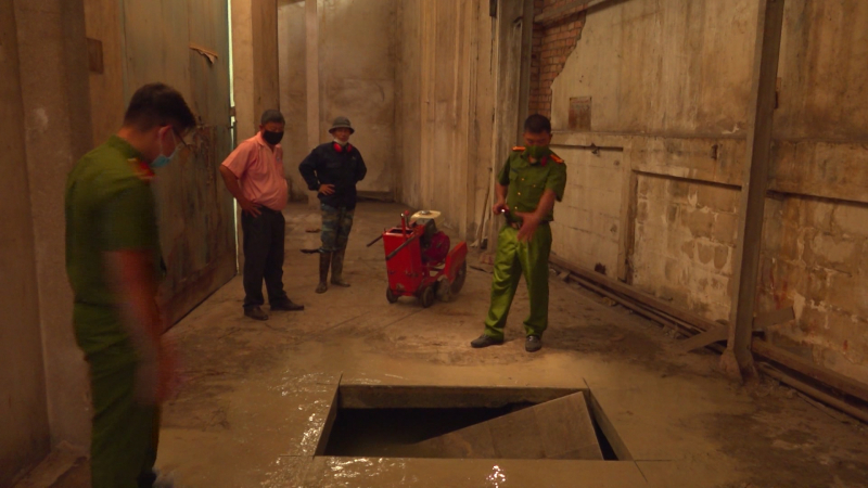 Công an kiểm tra hầm chứa chất thải.
