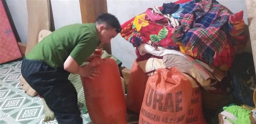 Công an xã hỗ trợ cùng người dân di chuyển đồ đạc.