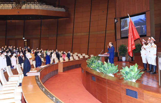 Dưới cờ đỏ sao vàng, Chủ tịch nước Nguyễn Xuân Phúc hứa trước Quốc hội và đồng bào sẽ luôn tu dưỡng đạo đức, cần kiệm liêm chính, chí công vô tư, thượng tôn pháp luật và tuyệt đối tuân thủ Hiến pháp, thực hiện trọn vẹn đầy đủ mọi nhiệm vụ, quyền hạn của Chủ tịch nước.