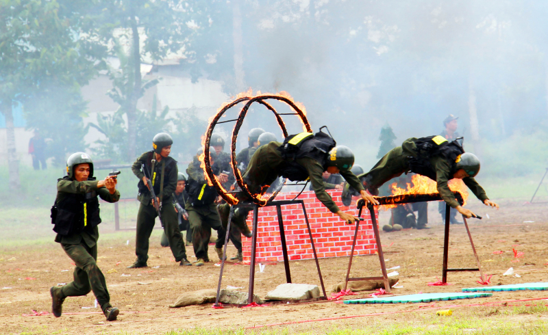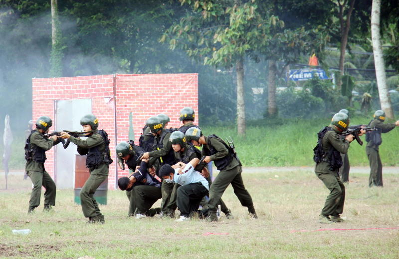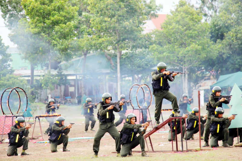 Thao diễn kỹ thuật bắn súng; kỹ, chiến thuật trong phương án giải tán đám đông, trấn áp tội phạm.