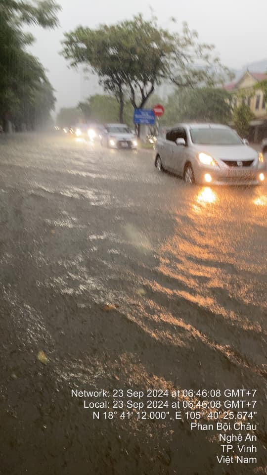 Mưa lớn, nhiều nơi ở TP Vinh ngập sâu trong nước