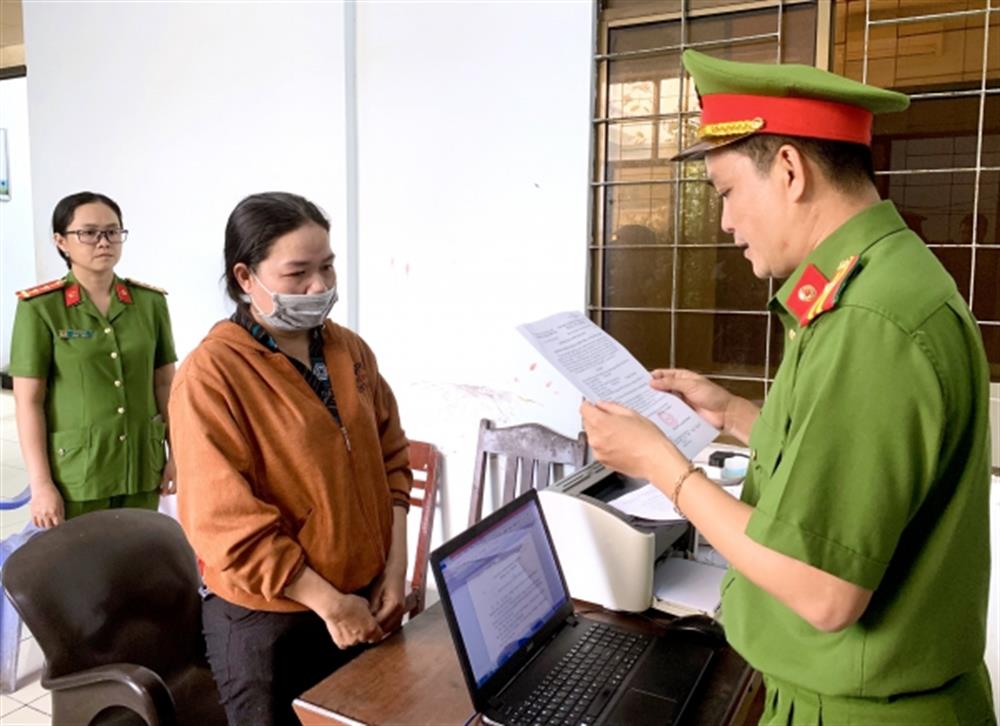 Cơ quan Công an tống đạt Quyết định khởi tố bị can Lâm Thị Tám về hành vi “Lừa đảo chiếm đoạt tài sản”.