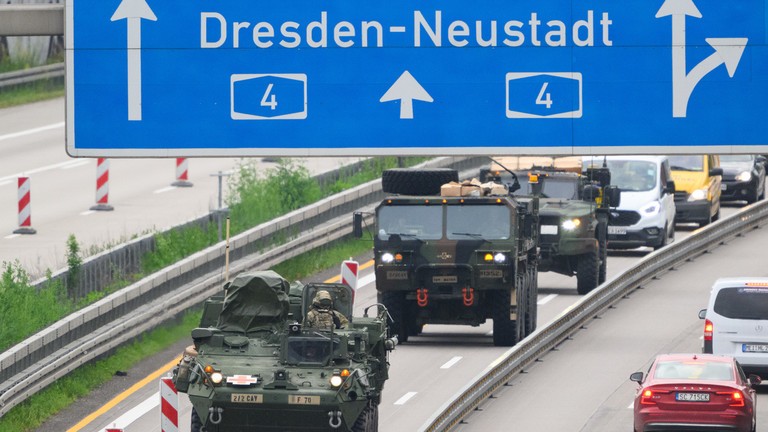 Quân đội Mỹ di chuyển dọc theo đường cao tốc ở Đức, ngày 24/5/2023