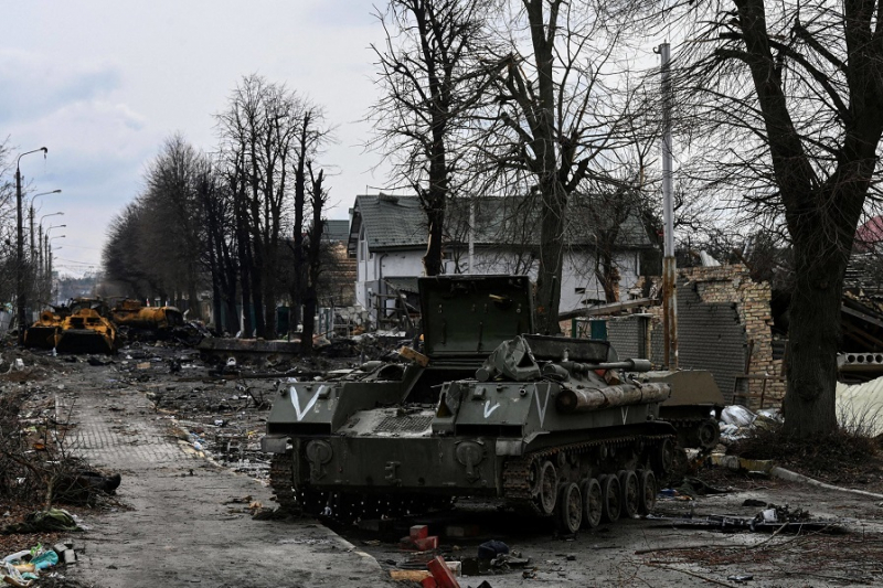 Một thiết giáp của Nga bị phá hủy ở Ukraine. Ảnh: AP