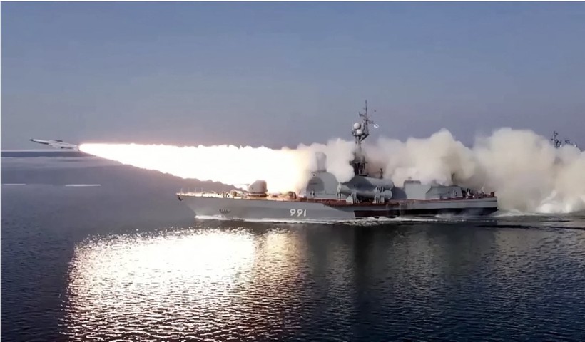 Tàu chiến của Hạm đội Thái Bình Dương - Hải quân Nga bắn đạn thật trong cuộc tập trận.