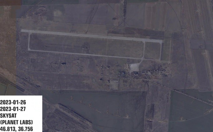 Những hình ảnh vệ tinh do công ty Planet Lab cung cấp cho thấy quân đội Nga đang khẩn trương xây dựng một tuyến phòng thủ theo dạng vòng tròn khép kín, hay còn được biết tới bằng thuật ngữ “phòng thủ đa diện”, xung quanh sân bay quân sự ở thành phố Berdyansk.