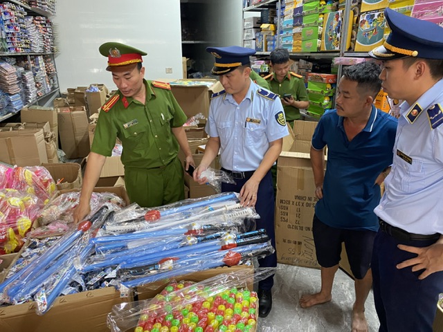 Phòng Cảnh sát kinh tế Công an tỉnh và Cục Quản lý thị trường phát hiện, thu giữ hơn 200 đồ chơi nguy hiểm, bạo lực và bánh kẹo không rõ nguồn gốc xuất xứ tại cơ sở kinh doanh Nguyễn Thị Thúy