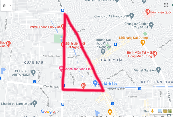 Khu vực phong tỏa là khu dân cư có tam giác từ Ngã tư Ga Vinh đến Cầu Kênh Bắc (đường Nguyễn Sỹ Sách), từ Cầu Kênh Bắc đến Ngã ba Quán Bàu ( đường Hà Huy Tập), từ ngã ba Quán Bàu (đường Mai Hắc Đế)