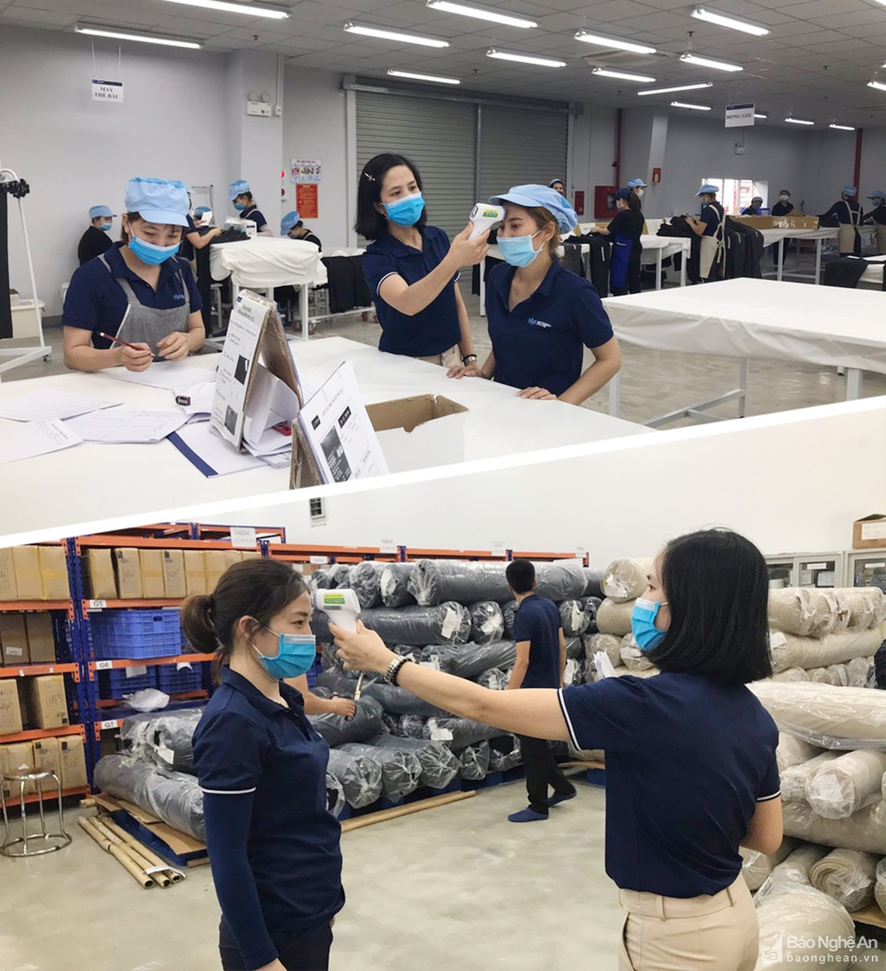 Phó Chủ tịch Liên đoàn Lao động tỉnh Nghệ An Nguyễn Thị Thu Nhi cho biết: Ngay từ khi phát hiện dịch bệnh lây nhiễm trong cộng đồng, đặc biệt là dịch đã xuất hiện tại một số doanh nghiệp trong khu công nghiệp ở Bắc Giang, Đà Nẵng, Liên đoàn Lao động tỉnh Nghệ An đã có công văn chỉ đạo các công đoàn cấp trên cơ sở hướng dẫn công đoàn cơ sở, đặc biệt là các công đoàn trong khu công nghiệp áp dụng ngay các biện pháp mạnh hơn trong phòng, chống dịch; thành lập “Tổ an toàn Covid-19” để đảm bảo sức khỏe cho người lao động và ổn định hoạt động sản xuất kinh doanh của đơn vị.