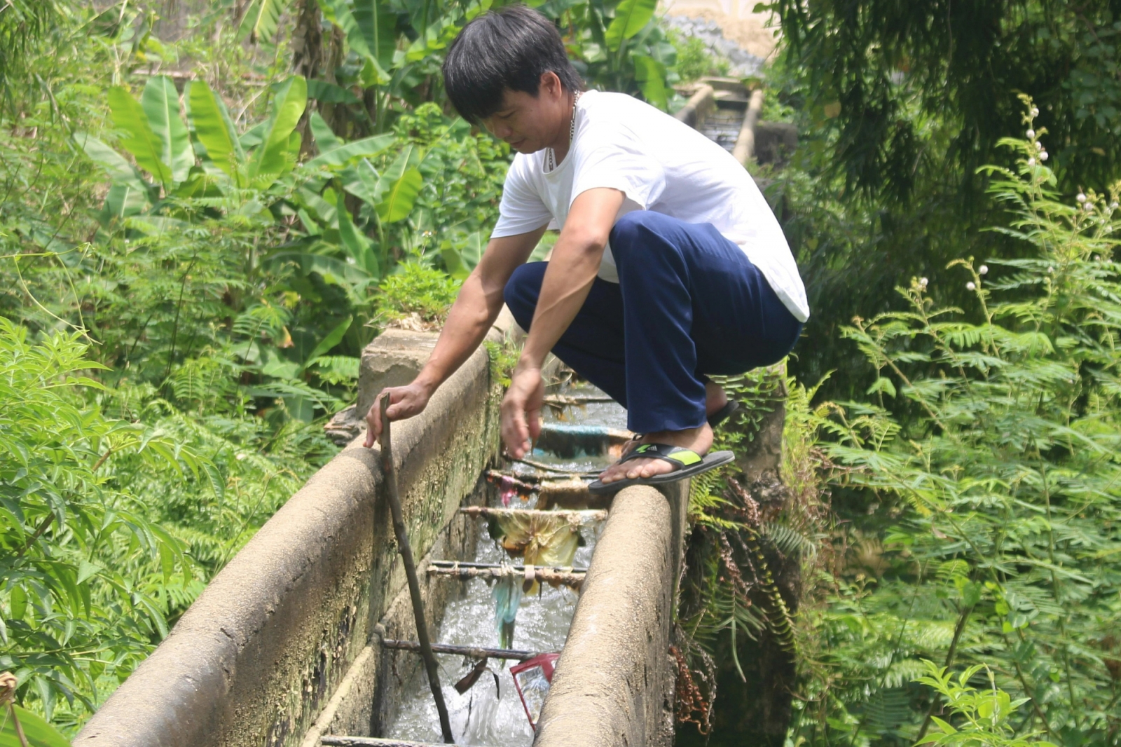 Nghi ngờ có trẻ nghịch, chắn cống nước ở phía trên để bơi nên thầy Thăng đi ngược theo mương nước để kiểm tra. Khi lên đến gần 2/3 cầu máng thì phát hiện có một bàn chân nhô lên.