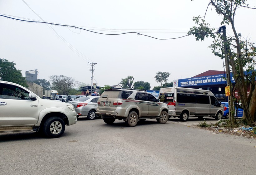 Xe đến đăng kiểm tại Trung tâm Đăng kiểm xe cơ giới 37-09D đậu chắn cả con đường.