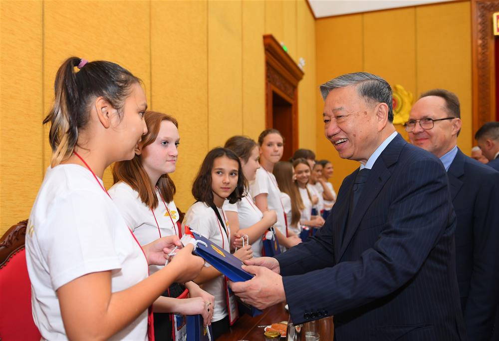Bộ trưởng Tô Lâm tin tưởng, các cháu sẽ có chuyến tham quan, nghỉ ngơi vui vẻ, nhiều kỷ niệm đẹp trước khi trở về Nga để bước vào năm học mới và tiếp tục kế thừa, phát huy truyền thống tốt đẹp của gia đình.