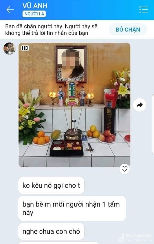 Không chỉ gọi điện cho hiệu trưởng, giáo viên để quấy rối, chúng còn lấy hình ảnh của cô Giang cắt ghép, đưa lên bàn thờ. Ngoài ra, những kẻ đòi nợ còn mạo danh vị giáo viên có em chồng đang nợ tiền chúng để gọi điện cho 2 đại lý gas trên địa bàn TP Vinh ship 2 bình gas đến giữa trường học nhằm đe dọa. “Chúng tôi thật sự rất hoang mang. Không ai vay tiền mà cũng bị vạ lây. Chúng tôi không biết phải xử lý như thế nào cả”, cô Giang nói.