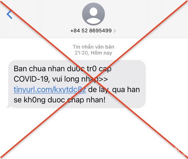 Những ngày gần đây, BHXH Việt Nam đã nhận được thông tin phản ánh của một số người dân về việc họ nhận được tin nhắn có đầu số 052... thông báo việc nhận tiền trợ cấp từ Quỹ bảo hiểm thất nghiệp cho người lao động bị ảnh hưởng bởi dịch Covid-19 với nội dung “Ban chua nhan duoc tr0 cap C0VID-19, vui long dang nhap tinyurl.com/kxytdc8z (hoặc shorturl.at/frFHU) de lay, qua han se kh0ng duoc chap nhan".