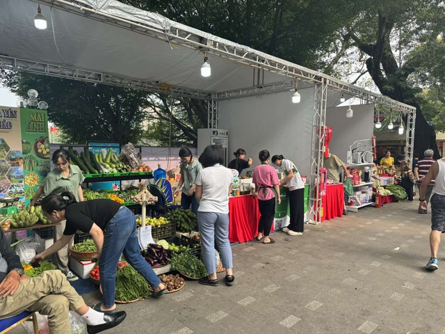 Nhiều loại rau, củ quả được bày bán tại không gian phố đi bộ như một phiên chợ quê. Ảnh: VGP/HT.