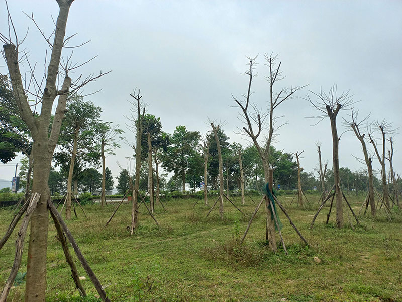 Nhiều cây xanh chết khô tại dự án chỉnh trang tiếp giáp với khu vực sân bay Phú Bài.