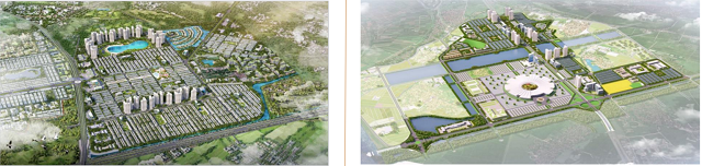 Phối cảnh Vinhomes Dream City (trái) và Vinhomes Cổ Loa (phải). Nguồn: Vinhomes