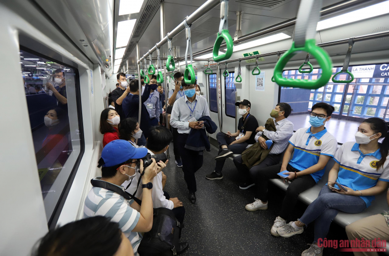 Những hành khách đầu tiên trải nghiệm dịch vụ đường sắt Cát Linh - Hà Đông. Ảnh: Nguyễn Thắng.